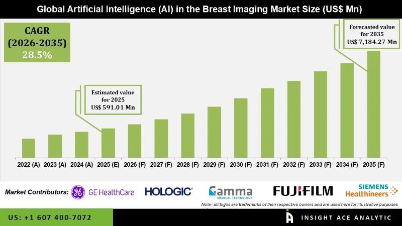 InsightAce Analytic Pvt. Ltd. announces the release of a market assessment report on the "Global Artificial Intelligence (AI) in Breast Imaging Market Size, Share & Trends Analysis Report By End-Use (Hospitals, Ambulatory Surgical Centers, Specialty Clinics & Trauma Centers), Region, Market Outlook And Industry Analysis 2035"