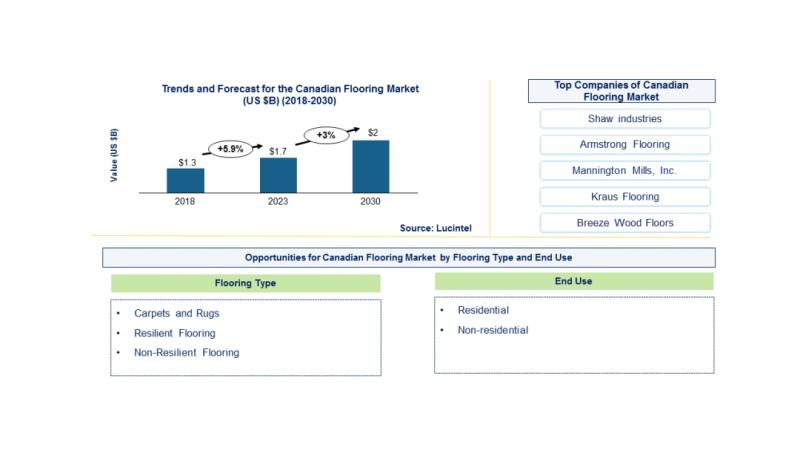 According to a market report by Lucintel, the future of the Canadian flooring market [https://www.lucintel.com/canadian-flooring-market.aspx] looks promising with opportunities in the residential and commercial sectors. The Canadian flooring market is expected to reach an estimated $4.5 billion by 2031 with a CAGR of 4.2% from 2025 to 2031. Growth in this market is primarily driven by increasing residential construction and growth in renovation and remodeling activities.