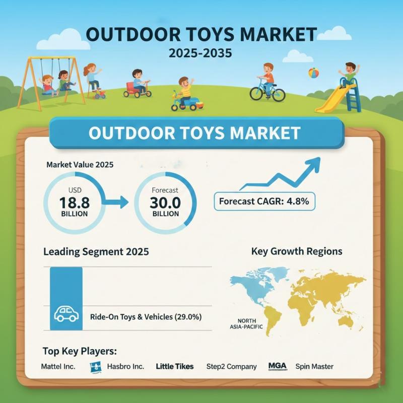 The global Outdoor Toys Market is projected to grow from an estimated USD 18.8 billion in 2025 to USD 30.0 billion by 2035, registering a compound annual growth rate (CAGR) of 4.8% over the forecast period. The findings highlight a sector demonstrating consistent, low-volatility expansion despite broader macroeconomic fluctuations.