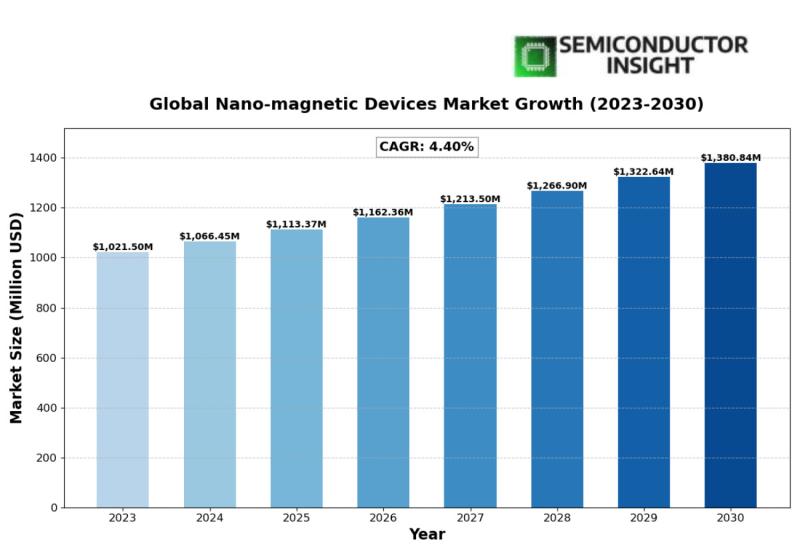 The global Nano-magnetic Devices Market size was estimated at USD 1021.50 million in 2023 and is projected to reach USD 1380.84 million by 2030, exhibiting a CAGR of 4.40% during the forecast period.