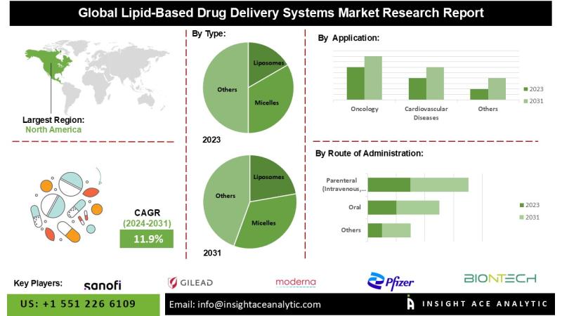 InsightAce Analytic Pvt. Ltd. announces the release of a market assessment report on the "Global Lipid-Based Drug Delivery Systems Market Size, Share & Trends Analysis Report By Type of Lipid-Based System (Liposomes, Solid Lipid Nanoparticles (SLNs), Nanostructured Lipid Carriers (NLCs), Lipid Nanoparticles (LNPs), Micelles, Lipid-Polymer Hybrid Systems), Application (Oncology, Cardiovascular Diseases, Neurological Disorders, Infectious Diseases, Vaccines, Gene Therapy, Pain Management), Route of Administration (Oral, Parenteral (Intravenous, Intramuscular), Topical, Pulmonary, Transdermal),…