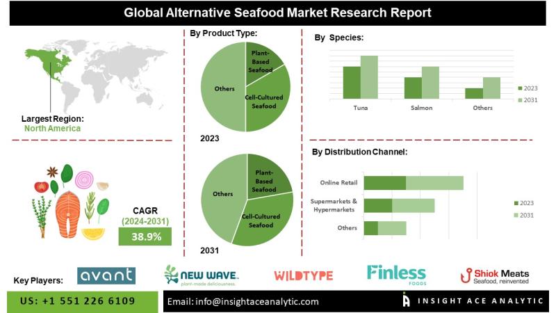 InsightAce Analytic Pvt. Ltd. announces the release of a market assessment report on the "Global Alternative Seafood Market Size, Share & Trends Analysis Report Product Type (Plant-Based Seafood, Cell-Cultured Seafood, Fermentation-Derived Seafood), Distribution Channel (Supermarkets & Hypermarkets, Online Retail, Specialty Stores, Foodservice Providers), Species (Tuna, Salmon, Shrimp, Crab, Others)- Market Outlook And Industry Analysis 2031"