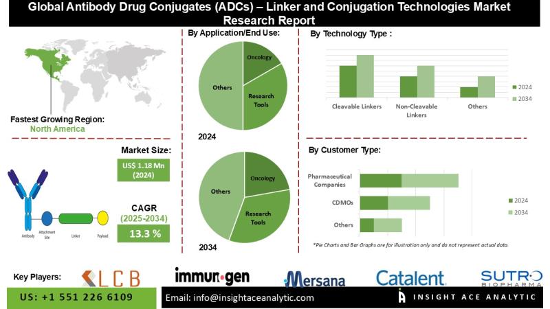 InsightAce Analytic Pvt. Ltd. announces the release of a market assessment report on the "Antibody Drug Conjugates (ADCs) - Linker and Conjugation Technologies Market"-, By Application/End Use (Oncology, Emerging Indications/Non-oncology, Research Tools), By Technology Type ( Cleavable Linkers, Protease-Sensitivity Cleavable Linkers, Acid-Sensitive Cleavable Linkers, Glutathione Sensitivity Cleavable Linkers, Non-Cleavable Linkers, Emerging Linkers, Conventional Conjugation, Lysine-Based Conjugation, Cysteine-Based Conjugation, Site-Specific Conjugation, Novel Conjugation), By Customer Type (Pharmaceutical Companies, CDM, Academic/Research Institutions,…
