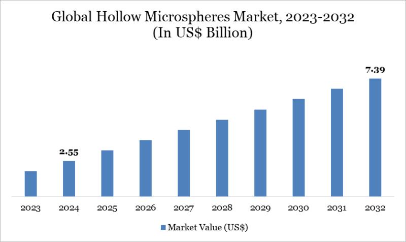 The Global Hollow Microspheres Market size reached US$ 2.55 billion in 2024 and is expected to reach US$ 7.39 billion by 2032, growing with a CAGR of 14.23% during the forecast period 2025-2032.