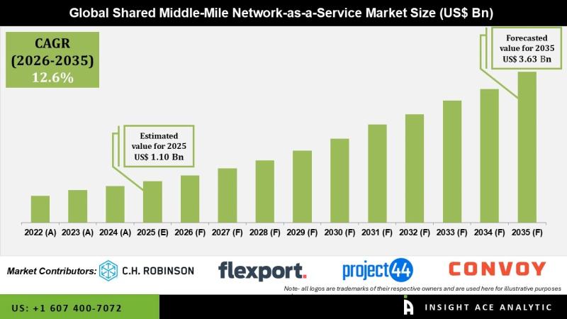InsightAce Analytic Pvt. Ltd. announces the release of a market assessment report on the "Global Shared Middle-Mile Network-as-a-Service Market Size, Share & Trends Analysis Report By Service Type (Shared Fulfillment & Cross Docking Networks, Platform Enabled Middle Mile Collaboration, Managed Shared Carrier Networks, and Analytics & Optimization Services), End-user (Third Party Logistics (3PL), E Commerce & Retail, Manufacturing & Distribution, and Consumer Goods & FMCG),-Market Outlook And Industry Analysis 2035"