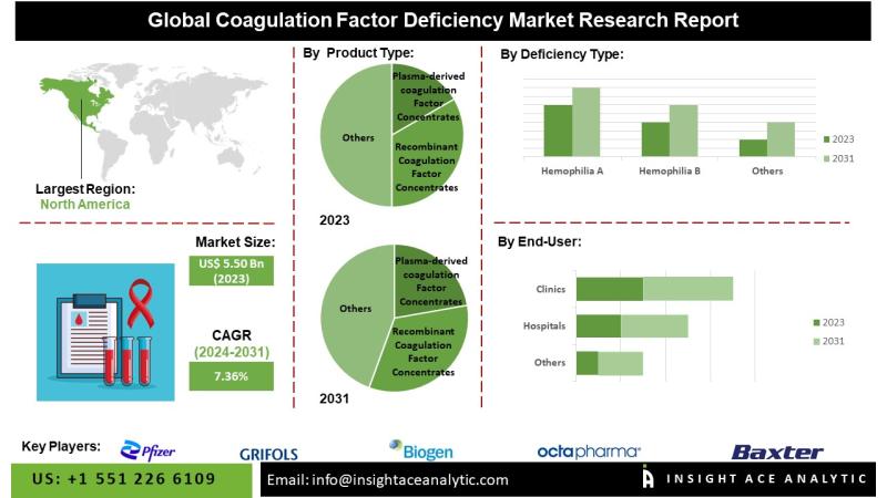 InsightAce Analytic Pvt. Ltd. announces the release of a market assessment report on the "Global Coagulation Factor Deficiency Market- (By Deficiency Type (Hemophilia A, Hemophilia B, Von Willebrand Disease, Factor XI Deficiency, Factor XIII Deficiency, and Others), By Product Type (Plasma-Derived Coagulation Factor Concentrates, Recombinant Coagulation Factor Concentrates, Biologics, Desmopressin, and Others), By End Users (Hospitals, Clinics, Homecare, Others)), Trends, Industry Competition Analysis, Revenue and Forecast To 2031."