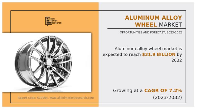 The global Aluminum Alloy Wheel Market size was valued at $16.4 billion in 2022, and is projected to reach $31.9 billion by 2032, growing at a CAGR of 7.2% from 2023 to 2032. Increase in demand for superior quality alloy wheels for vehicles and surge in production of vehicles drive the growth of the market. Moreover, factors such as high cost of aluminum alloy wheels and availability of steel-based wheel rims are expected to hamper the growth of the market during the forecast period. However, factors such as rise in adoption of carbon fiber in automotive industry and increase in investment on wheel design for better aerodynamics creates opportunities for the growth of the market across the globe.Download Sample Report (Get Full Insights in PDF - 200 Pages) at: https://www.alliedmarketresearch.com/request-sample/A10064