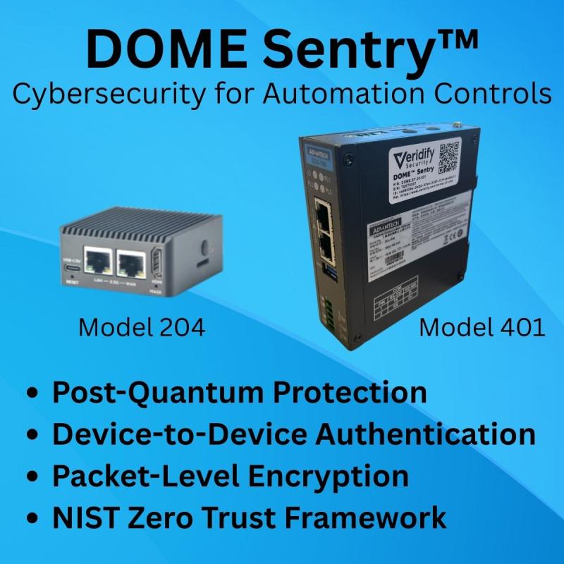 "While some technologies like our smartphones can be updated monthly or even daily, the critical OT networks and devices running our utilities, industrial controls, and buildings were never designed for rapid adaptation of new technology and security," said Louis Parks, CEO of Veridify Security. "DOME and our PQ Sentry answer a critical need to put in place post-quantum protection for existing systems and devices that are now deployed and that we rely on daily."