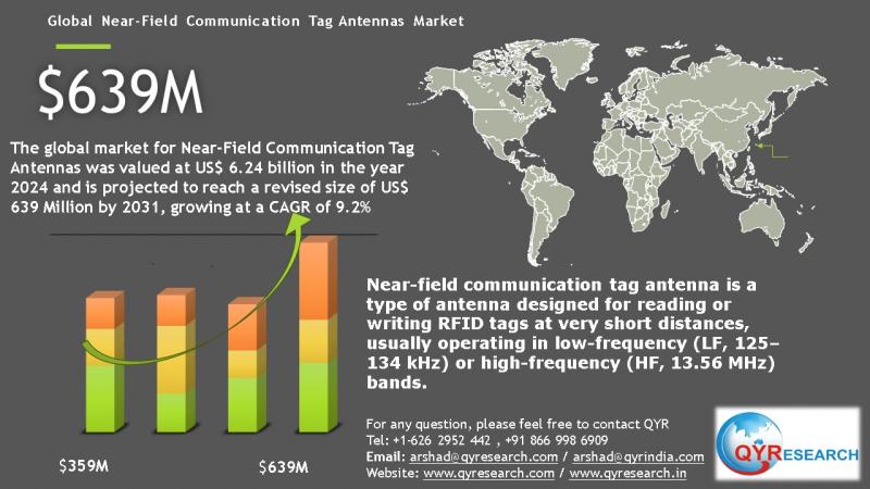 According to QY Research announces the release of 2025 latest report ""Near-Field Communication Tag Antennas Market"". Based on current situation and impact historical analysis (2020-2024) and forecast calculations (2025-2031), this report provides a comprehensive analysis of the global Near-Field Communication Tag Antennas market, including market size, share, demand, industry development status, and forecasts for the next few years.The global market for Near-Field Communication Tag Antennas was valued at US$ 359 million in the year 2024 and is projected to reach a revised size of US$ 639 million by 2031, growing at a CAGR of 9.2% during the forecast period.