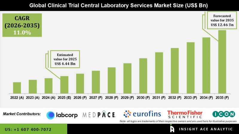 InsightAce Analytic Pvt. Ltd. announces the release of a market assessment report on the " Clinical Trial Central Laboratory Services Market - (By Services (Biomarker Testing Services, Sample Collection and Processing, Microbiology Services, Anatomic Pathology/Histology, Genomic and Molecular Testing, Pharmacokinetics/Pharmacodynamics (PK/PD), Logistics & Sample Management, Data Management & Reporting, Others), By Phase (Phase I, Phase II, Phase III, Phase IV), By Indication (Oncology, Cardiology, Neurology, Infectious Diseases, Immunology & Autoimmune…