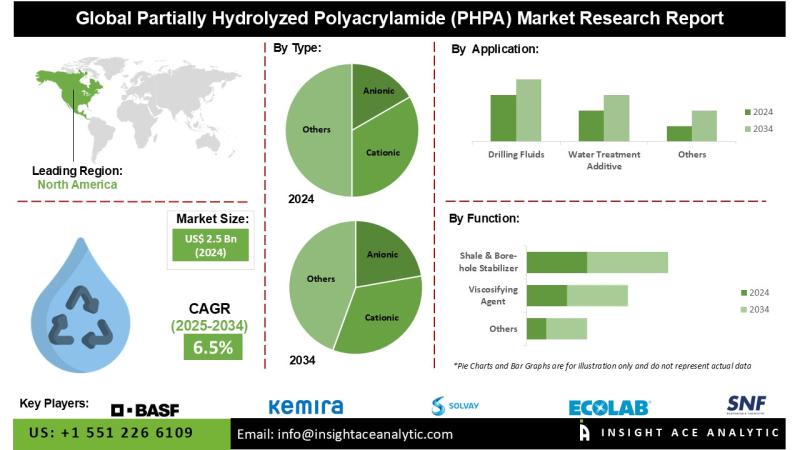 InsightAce Analytic Pvt. Ltd. announces the release of a market assessment report on the "Global Partially Hydrolyzed Polyacrylamide (PHPA) Market- (By Type (Anionic, Cationic, Non-ionic, Others), By Function (Viscosifying Agent, Shale bore-hole Stabilizer, Excapsulator, Flocculation Agent, Others), By Application (Drilling Fluids, Water Treatment Additive, Soil Stabilization, Paper Manufacturing, Others), By End-Use (Oil & Gas, Waste Water Treatment, Mining, Agriculture, Paper, Others)), Trends, Industry Competition Analysis, Revenue and Forecast To 2034."