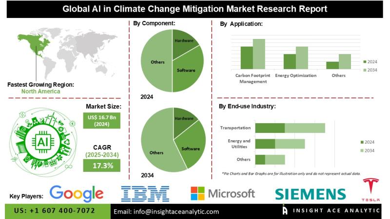 InsightAce Analytic Pvt. Ltd. announces the release of a market assessment report on the "Global AI in Climate Change Mitigation Market - By Component (Hardware, Software, Services), By Deployment Mode (Cloud-Based, On-Premises), By End-Use Industry (Energy & Utilities, Transportation, Agriculture, Construction, Government and Public Sectors), By Application (Carbon Footprint Management, Energy Optimization, Climate Risk Assessment, Sustainable Agriculture), Trends, Industry Competition Analysis, Revenue And Forecast To 2034."