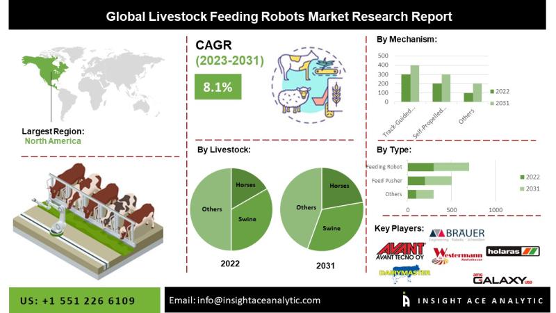 InsightAce Analytic Pvt. Ltd. announces the release of a market assessment report on the "Global Livestock Feeding Robots Market- by Livestock (Ruminants, Horses, Swine, Poultry, and Others), Mechanism (Track-Guided Robots and Self-Propelled Robot), Type (Feed Pusher, Feeding Robots, and Robotic Feed Kitchen/Storage), Farm Size (Small and Medium-Sized Farms and Large Sized Farms), Trends, Industry Competition Analysis, Revenue and Forecast To 2031."Get Free Access to Demo Report, Excel Pivot and ToC: https://www.insightaceanalytic.com/request-sample/1317