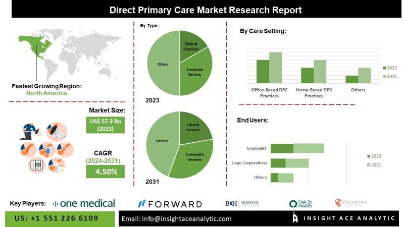 InsightAce Analytic Pvt. Ltd. announces the release of a market assessment report on the "Direct Primary Care Market"- By Type (Clinical Services, Telehealth Services, Laboratory Services, Consultative Services), Care Setting (Office-Based DPC Practices, Home-Based DPC Practices, Telehealth-Only DPC Practices, Hybrid DPC Practices), End Users (Individuals, Employers, Small Businesses, Large Corporations, Insurance Companies (offering DPC as part of their plans)), Region, Market Outlook And Industry Analysis 2034."