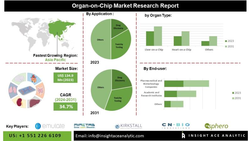 InsightAce Analytic Pvt. Ltd. announces the release of a market assessment report on the "Organ-on-Chip Market"- By Application (Drug Discovery, Toxicity Testing, Other Applications), By Offering (Product, Services), By Organ Type (Liver-on-a-Chip, Kidney-on-a-Chip, Lung-on-a-Chip, Heart-on-a-Chip, Brain-on-a-Chip, Other Organ-on-Chip), By End User (Pharmaceutical and Biotechnology Companies, Academic and Research Institutes, Cosmetic Industry), Region, Market Outlook And Industry Analysis 2034"