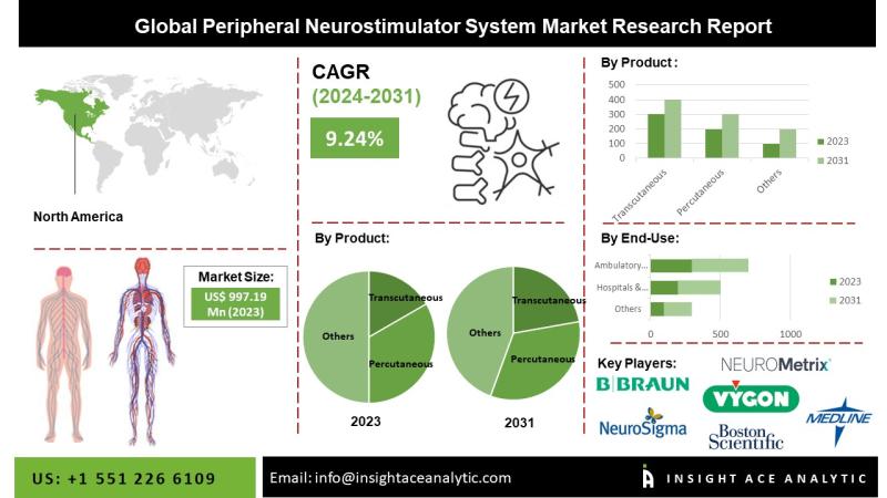 InsightAce Analytic Pvt. Ltd. has announced the publication of a market research report titled "Global Peripheral Neurostimulator System Market (by Product (Transcutaneous, Percutaneous, And Implantable) And End-Use (Hospitals & Clinics, Ambulatory Centers, Specialty Centers and Others))- Market Outlook and Industry Analysis 2034"
