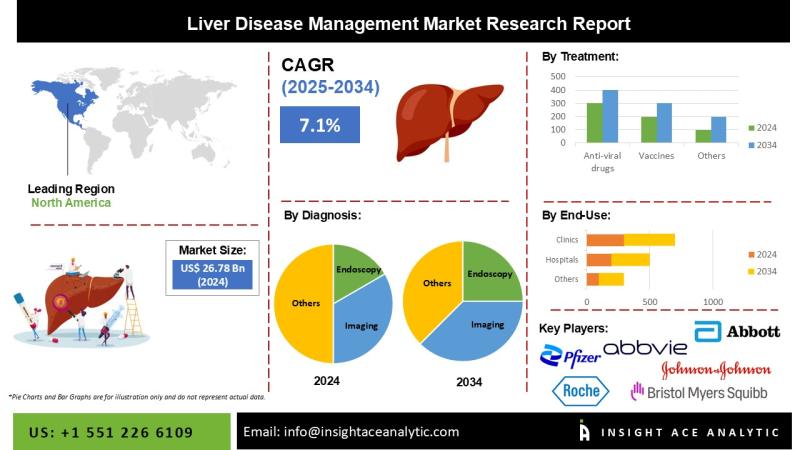 Insight Analytics Pvt. Ltd. announces the release of a market assessment report on the "Global Liver Disease Management Market (By Diagnosis (Endoscopy, Imaging, Biopsy, And Others.), Treatment (Anti-Viral Drugs, Targeted Therapy, Chemotherapy and Others) And End-Use (Clinics, Hospitals, Diagnostics Laboratories and Others))- Market Outlook and Industry Analysis 2034"
