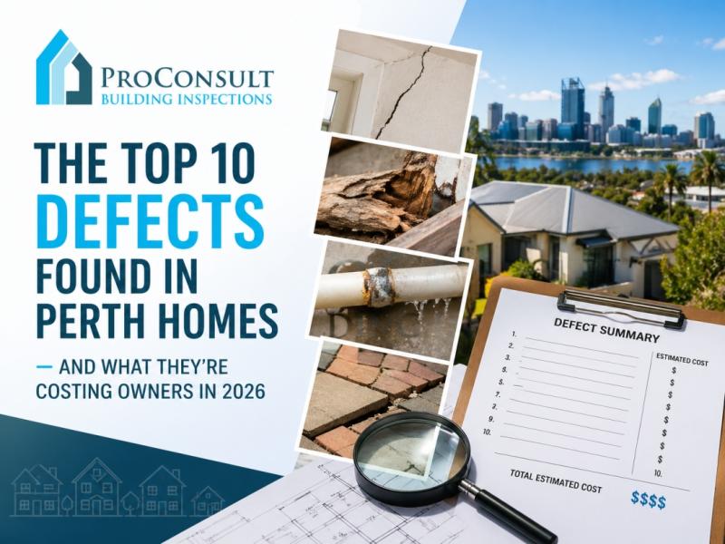 ProConsult Building Inspections reveals the top 10 defects found in Perth homes, from leaking showers to structural issues, many costing thousands to fix. Based on 2025 inspections, the report warns that delayed maintenance is driving repair costs beyond $20,000 for some properties. With ageing homes and stricter regulations in 2026, proactive inspections are critical to protect…