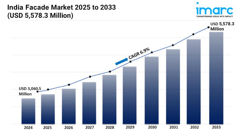 According to the latest report by IMARC Group, the India facade market size was valued at USD 3,060.5 Million in 2024. Looking forward, IMARC Group estimates the market to reach USD 5,578.3 Million by 2033, exhibiting a CAGR of 6.9% from 2025-2033.