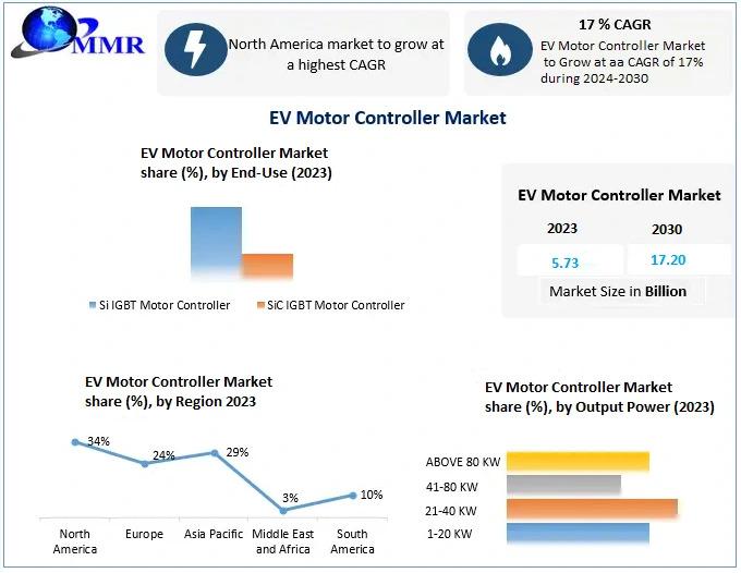 ►Global EV Motor Controller Market Set to Surge to USD 17.20 Billion by 2030, Driven by 17% CAGRThe global Electric Vehicle (EV) Motor Controller market is poised for significant growth, with projections indicating an expansion from USD 5.73 billion in 2023 to approximately USD 17.20 billion by 2030, reflecting a robust Compound Annual Growth Rate (CAGR) of 17% during the forecast period.
