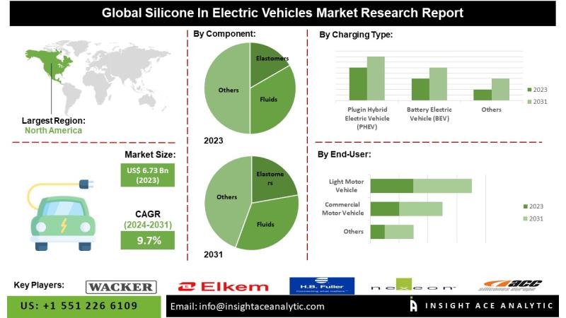 InsightAce Analytic Pvt. Ltd. announces the release of a market assessment report on the "Global Silicone in Electric Vehicles Market - (By Product (Elastomers, Fluids, Resins), By Charging Type (Plugin Hybrid Electric Vehicle (PHEV), Battery Electric Vehicle (BEV)), By Vehicle Type (Light Motor Vehicle (LMV), Commercial Motor Vehicle (CMV))), Trends, Industry Competition Analysis, Revenue and Forecast To 2031."