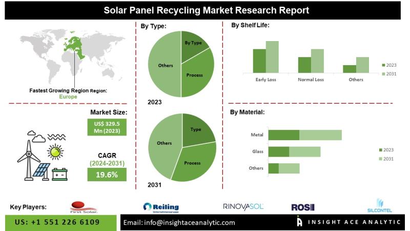 InsightAce Analytic Pvt. Ltd. announces the release of a market assessment report on the "Global Solar Panel Recycling Market Size, Share & Trends Analysis Report By Type (Monocrystalline, Polycrystalline, Thin Film), Process (Thermal, Chemical, Mechanical, Laser, Combination), Material (Silicone, Metal, Glass, Plastic), Shelf Life (Early Loss, Normal Loss), Region, Market Outlook And Industry Analysis 2031"