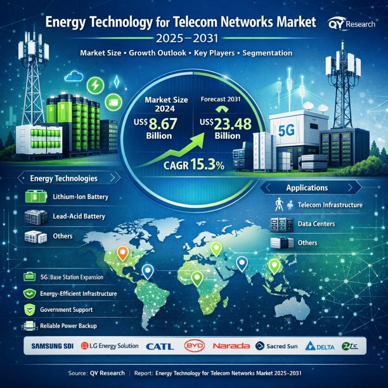 LOS ANGELES, United States - According to QY Research, the global Energy Technology for Telecom Networks Market is witnessing strong momentum as telecom operators worldwide invest heavily in energy-efficient and reliable power storage solutions. As per the latest report titled "Global Energy Technology for Telecom Networks Market Share and Ranking, Overall Sales and Demand Forecast 2025-2031," the market was valued at US$ 8.67 billion in 2024 and is projected to…