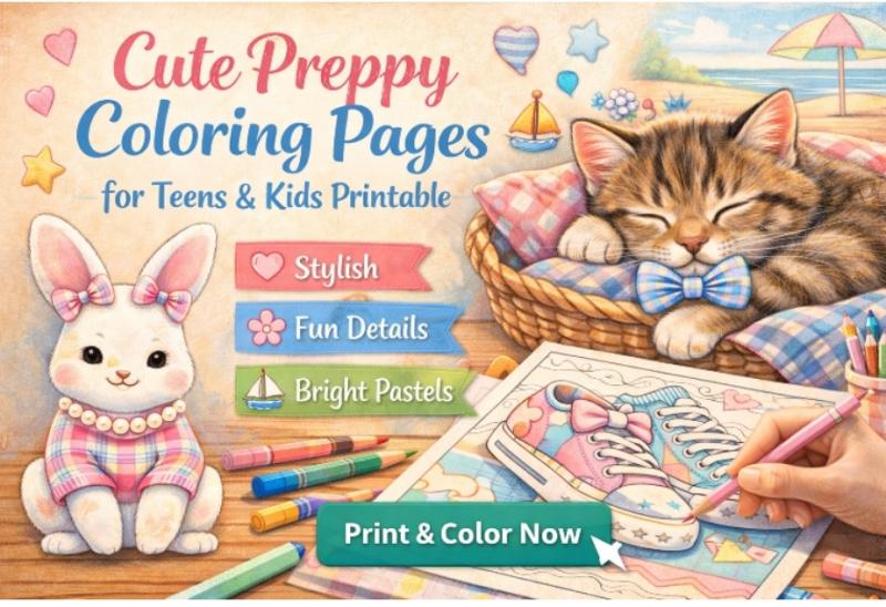 Cute preppy coloring pages bring a fresh spark to any coloring session for kids and teens. The designs mix fun shapes with that classic preppy vibe full of bright pastels and neat patterns. Kids and teens both reach for these pages because they feel stylish yet simple to color.