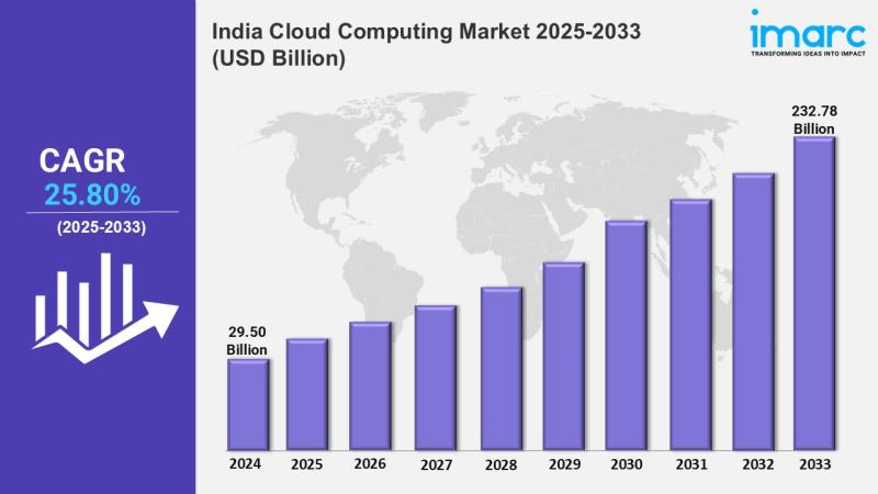 The India cloud computing market size reached USD 29.50 Billion in 2024. Looking forward, IMARC Group expects the market to reach USD 232.78 Billion by 2033, exhibiting a growth rate (CAGR) of 25.80% during 2025-2033.