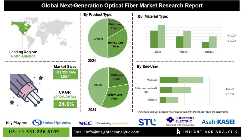 InsightAce Analytic Pvt. Ltd. announces the release of a market assessment report on the "Global Next-Generation Optical Fiber Market - (By Material Type (Glass, Plastic), By Product Type (Multicore Fiber, Hollow Core Fiber) By End User (Telecommunication, Medical, Aerospace and Defense, Information Technology, Others)), Trends, Industry Competition Analysis, Revenue and Forecast To 2034."