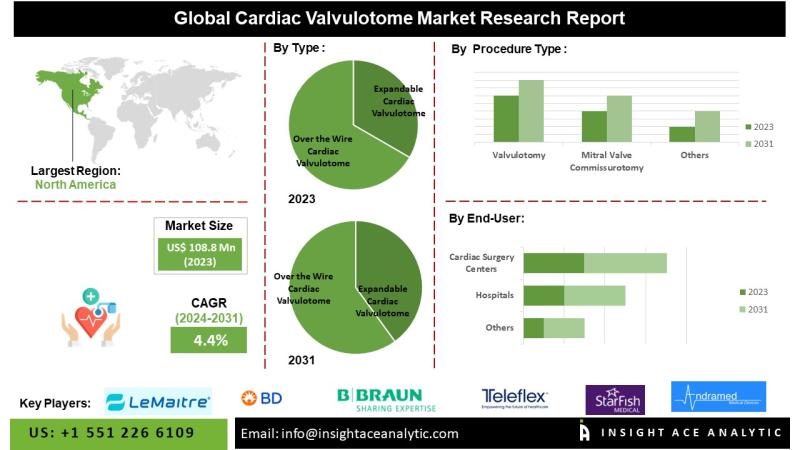 InsightAce Analytic Pvt. Ltd. announces the release of a market assessment report on the "Global Cardiac Valvulotome Market- (By Type (Expandable Cardiac Valvulotome and Over the Wire Cardiac Valvulotome), By Procedure Type (Valvulotomy, Mitral Valve Commissurotomy, and Others), By End User (Hospitals, Cardiac Surgery Centers, Ambulatory Surgical Centers, and Others)), By Region, Trends, Industry Competition Analysis, Revenue and Forecast To 2031."