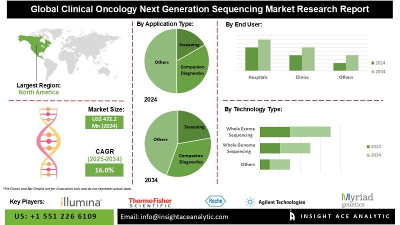 "Clinical Oncology Next Generation Sequencing Market" in terms of revenue was estimated to be worth $ 474.2 Mn in 2024 and is poised to reach $ 2,069.7 Mn by 2034, growing at a CAGR of 16.0% from 2025 to 2034 according to a new report by InsightAce Analytic.