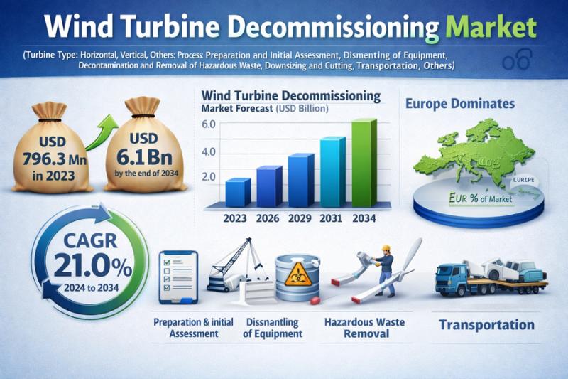 Wind Turbine Decommissioning Market to Reach USD 6.1 Billion by 2034, Growing at …