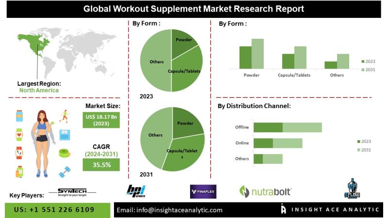 InsightAce Analytic Pvt. Ltd. announces the release of a market assessment report on the "Global Workout Supplements Market - (By Product Type (Powder, Capsule/ Tablet, Drinks), By Distribution Channel (Supermarkets & Hypermarkets, E-commerce and Online Stores, Drug stores and Pharmacies, Other Offline stores)), Trends, Industry Competition Analysis, Revenue and Forecast To 2031."
