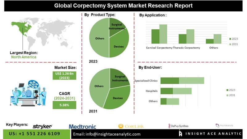 InsightAce Analytic Pvt. Ltd. announces the release of a market assessment report on the "Global Corpectomy System Market- (By Product (Surgical Instruments, Devices), By Application (Cervical Corpectomy, Thoracic Corpectomy, Lumbar Corpectomy), By End-Use (Hospitals, Specialized Clinics, Ambulatory Surgical settings)), Trends, Industry Competition Analysis, Revenue and Forecast To 2031."