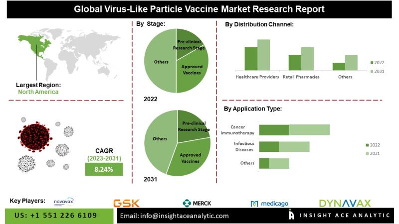 InsightAce Analytic Pvt. Ltd. announces the release of a market assessment report on the "Global Virus-Like Particle Vaccine Market- (By Application Type (Infectious Diseases, Cancer Immunotherapy, Others), By Stage (Pre-clinical Research Stage, Approved Vaccines), By Distribution Channel (Healthcare Providers, Government Vaccination Programs, Retail Pharmacies)), Trends, Industry Competition Analysis, Revenue and Forecast To 2031."