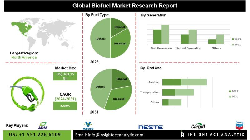 InsightAce Analytic Pvt. Ltd. announces the release of a market assessment report on the "Global Biofuel Market- (By Fuel Type (Ethanol, Biodiesel, Renewable Diesel, and Biojets), Generation (First Generation, Second Generation, Third Generation), End-use (Transportation, Aviation)), Trends, Industry Competition Analysis, Revenue and Forecast To 2034."