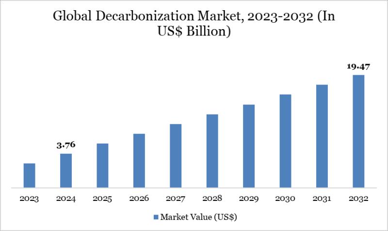Global Decarbonization Market reached US$ 3.76 billion in 2024 and is expected to reach US$ 19.47 billion by 2032, growing with a CAGR of 22.82% during the forecast period 2025-2032.