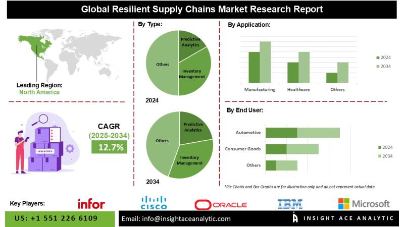 InsightAce Analytic Pvt. Ltd. announces the release of a market assessment report on the "Global Resilient Supply Chains Market- (By Type: Predictive Analytics, Inventory Management, Demand Planning, Risk Management, Logistics Optimization; By Application: Retail, Manufacturing, Healthcare, Transportation & Logistics, Energy & Utilities; By End User:, E-commerce, Automotive, Consumer Goods, Aerospace & Defense, Pharmaceuticals; By Deployment Mode, By Component, By Enterprise Size, By Region, Trends, Industry Competition Analysis, Revenue and Forecast…