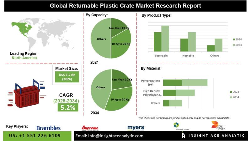 InsightAce Analytic Pvt. Ltd. announces the release of a market assessment report on the "Global Returnable Plastic Crate Market - (By Capacity (Less than 10 kg, 10 kg to 20 kg, 21 to 35 kg, 36 to 50 kg, Above 50 kg), By Product Type (Stackable, Nestable, Collapsible), By Material (High-Density Polyethylene (HDPE), Polypropylene (P.P.), Others), By Application (Agriculture, Grocery, Dairy, Bakery, Seafood & Meat, Others)), Trends, Industry Competition…