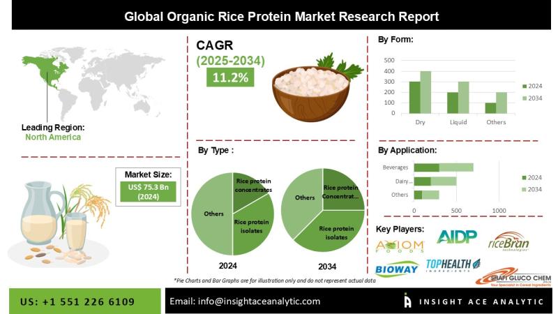 InsightAce Analytic Pvt. Ltd. announces the release of a market assessment report on the "Global Organic Rice Protein Market Size, Share & Trends Analysis Report By Type (Rice Protein Isolate, Rice Protein Concentrate), Application (Sports & Energy Nutrition Drinks, Beverages, Dairy Alternatives, Bakery & Confectionery, Meat Analogs & Extenders) And Form (Dry And Liquid)- Market Outlook And Industry Analysis 2034"