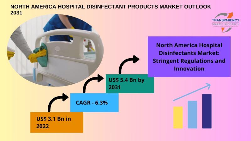 The North America hospital disinfectant products market is poised for significant expansion over the next decade. Valued at approximately US$ 3.1 billion in 2022, the market is projected to exhibit a robust compound annual growth rate (CAGR) of 6.3% from 2023 through 2031, reaching a forecasted value of US$ 5.4 billion by the end of the period. This growth trajectory is propelled by increasing awareness of infection control, rising prevalence of hospital-acquired infections (HAIs), and stringent regulatory norms mandating effective disinfection protocols within healthcare facilities.Access key findings and insights from our Report in this sample - https://www.transparencymarketresearch.com/sample/sample.php?flag=S&rep_id=85880