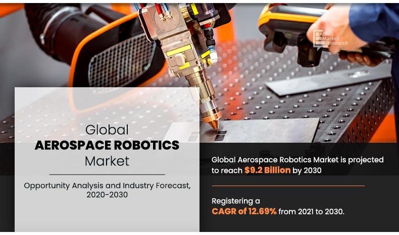 Aerospace robotics market size was accounted for $2.9 billion in 2020, and is estimated to reach $9.2 billion by 2030, growing with a CAGR of 12.6% from 2021 to 2030.