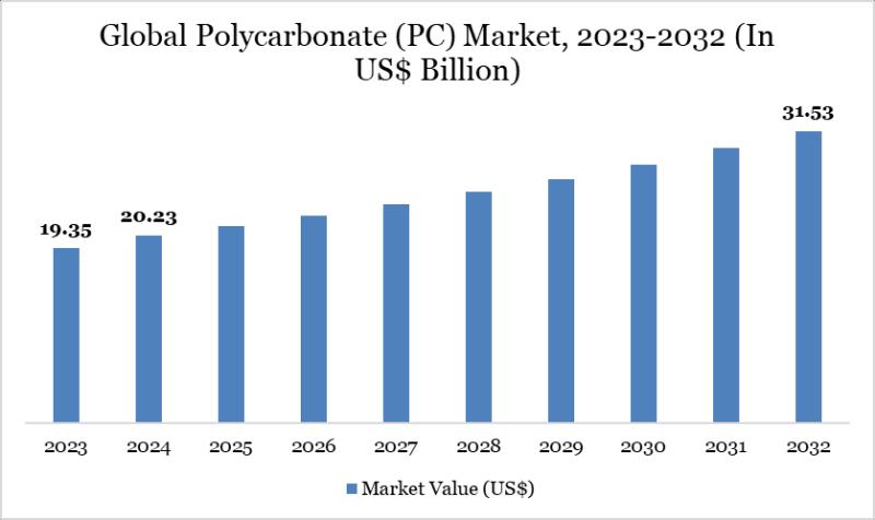 As per DataM intelligence research report" The global polycarbonate (PC) market reached US$20.23 billion in 2024 and is expected to reach US$31.53 billion by 2032, growing at a CAGR of 5.84% during the forecast period 2025-2032." Lightweight, impact-resistant material demand is driving polycarbonate adoption across industries.