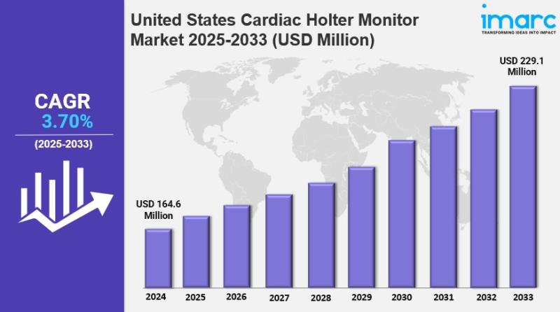 Market Overview 2025-2033The United States cardiac holter monitor market size reached USD 164.6 Million in 2024. Looking forward, IMARC Group expects the market to reach USD 229.1 Million by 2033, exhibiting a growth rate (CAGR) of 3.70% during 2025-2033. The market is experiencing rapid growth, driven by rising cardiovascular disease prevalence, an aging population, and technological advancements. Key trends include increasing adoption of wireless and wearable Holter monitors, with major players focusing on remote monitoring, AI integration, and improved patient compliance.
