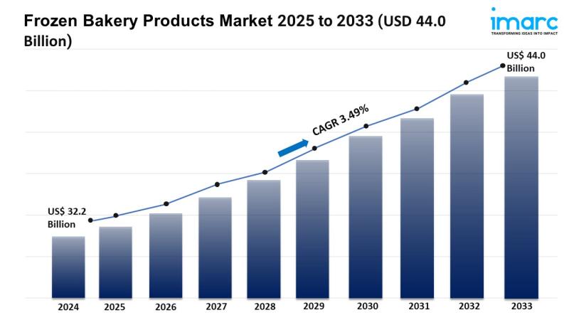 Market Overview:The frozen bakery products market is experiencing rapid growth, Growing Mainstream Adoption, Blockchain Technology Advancements, and Rising Public Awareness. According to IMARC Group's latest research publication, "Frozen Bakery Products Market Size, Share, Trends and Forecast by Product Type, Distribution Channel, End User, and Region, 2025-2033", The global frozen bakery products market size reached USD 32.2 Billion in 2024. Looking forward, IMARC Group expects the market to reach USD 44.0 Billion by 2033, exhibiting a growth rate (CAGR) of 3.49% during 2025-2033.