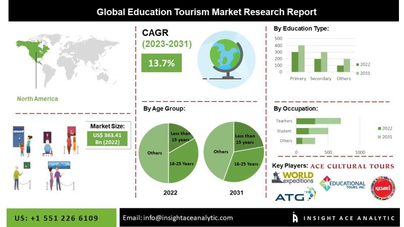 InsightAce Analytic Pvt. Ltd. announces the release of a market assessment report on the "Global Educational Tourism Market - (By Age Group (Less Than 15 Years, 16-25 Years, 26-40 Years, 41-55 Years), By Education Type (Primary, Secondary, College, Post-graduation), By Occupation (Students, Teacher, Government Officials, Corporation Managers, Enterprise Owners, Workers, Others)), Trends, Industry Competition Analysis, Revenue and Forecast To 2031."
