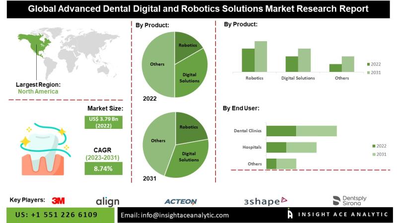 InsightAce Analytic Pvt. Ltd. announces the release of a market assessment report on the "Global Advanced Dental Digital and Robotics Solutions Market - (By Product (Robotics, Dental Digital Solutions (Equipment (Imaging Equipment, Manufacturing Equipment), Software (Dental Practice Management Software, Dental Clinical Software), Specialty Area (Orthodontics, Prosthodontics, Implantology, Other Specialty Areas)), By End-User (Hospitals, Dental Clinics, Others)), Trends, Industry Competition Analysis, Revenue and Forecast To 2031."