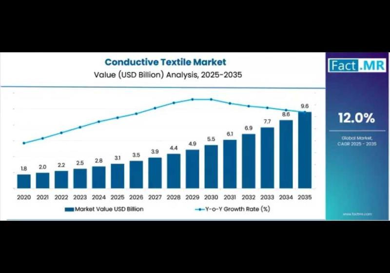 The global conductive textile market is undergoing rapid transformation driven by technological convergence between textiles and electronics. These smart fabrics-capable of conducting electricity while retaining textile properties like flexibility and breathability-are becoming essential across sectors such as healthcare, defense, wearable electronics, automotive, aerospace, and consumer tech. The global market is expected to grow from USD 3.1 billion in 2025 to approximately USD 9.6 billion by 2035, tracking a strong…