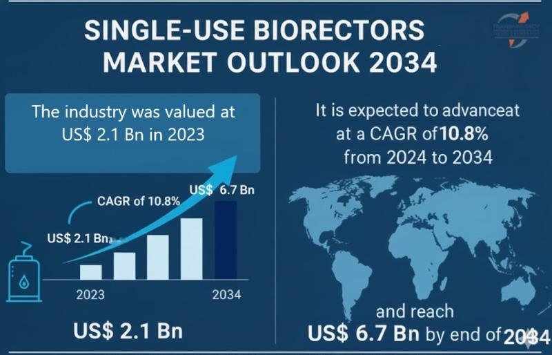 The Single-use Bioreactors Market continues to demonstrate strong global momentum, driven by rapid advancements in bioprocessing technologies, increased demand for biologics, and the growing shift from stainless-steel systems to flexible, disposable solutions. With the industry valued at US$ 2.1 Bn in 2023, it is poised for robust expansion, projected to grow at a CAGR of 10.8% from 2024 to 2034, ultimately reaching US$ 6.7 Bn by the end of 2034.…